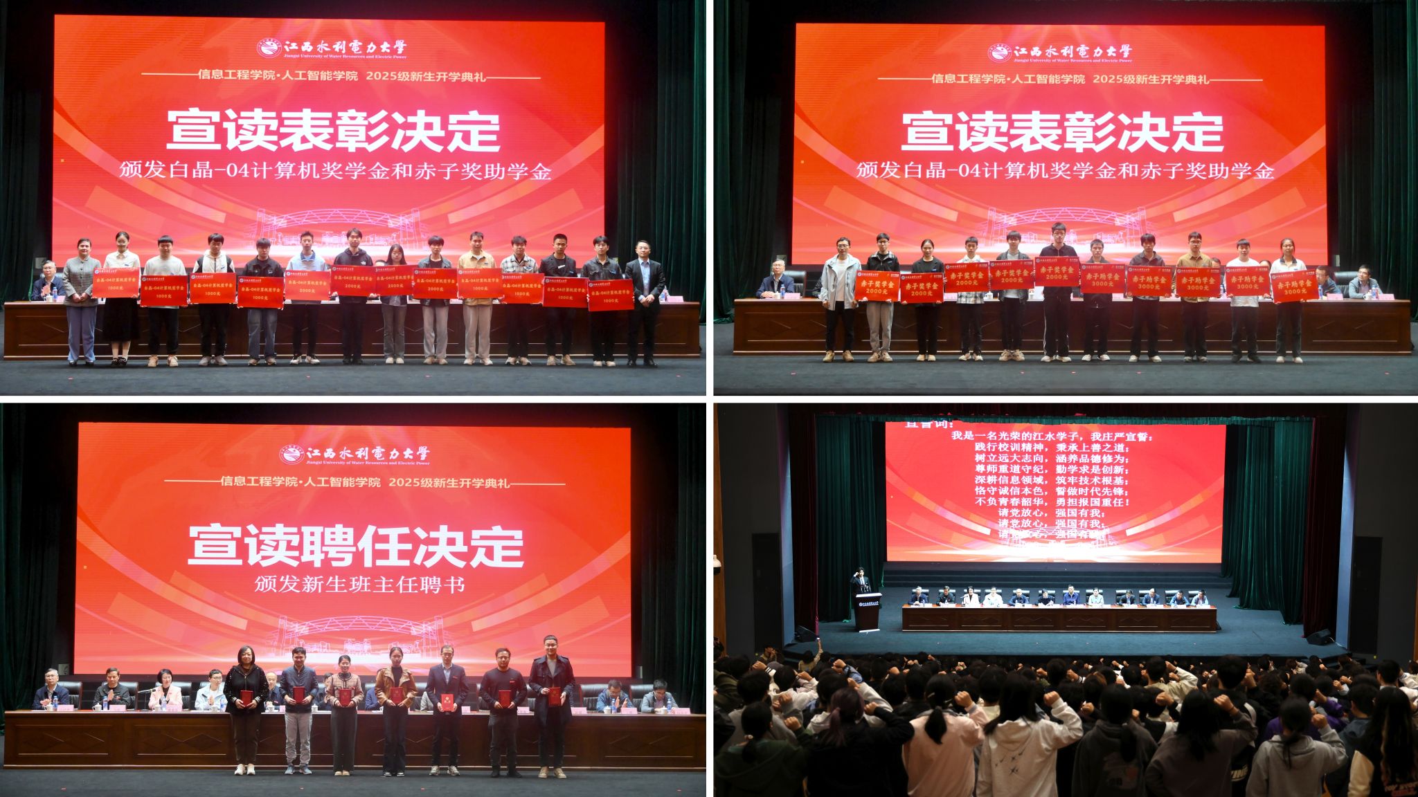 典礼还举行了白晶-04计算机奖学金和赤子奖助学金颁奖仪式、信息工程学院2025级新生班主任(学业导师)聘书颁发仪式、全体新生集体宣誓活动。