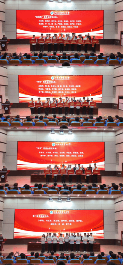 典礼现场,到场领导和嘉宾为54名“富技腾”“欧诺”“和良”企业奖学金获奖学子颁奖,并为第三届朋辈辅导员颁发聘书。(文/图 刘欣 责任编辑 张惠 潘旭)