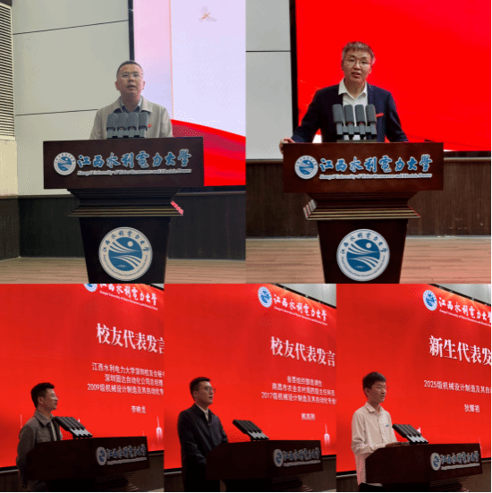 学院党委负责人讲授理想信念教育必修课,勉励学生以匠心铸就强国梦、以奋斗书写青春志。学院行政负责人全面介绍了学院发展历程、学科优势、师资力量及人才培养体系,让新生对专业学习和成长方向有了清晰认知。2009级机械设计制造及其自动化专业李映龙、2017级机械设计制造及其自动化专业熊高翔等两位校友分享了学习、成长与工作经历。2025级机械设计制造及其自动化专业狄耀祖作为新生代表作表态发言。