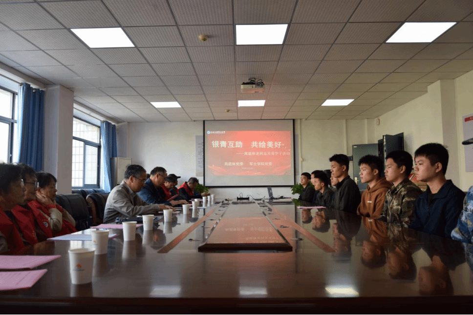 11月14日,我校离退休党委联合军士学院党委在彭桥校区科技馆C204,举办“银青互助,共绘美好”离退休老同志关爱定向培养军士活动,离退休党委、军士学院党委师生代表共30余人参加活动。