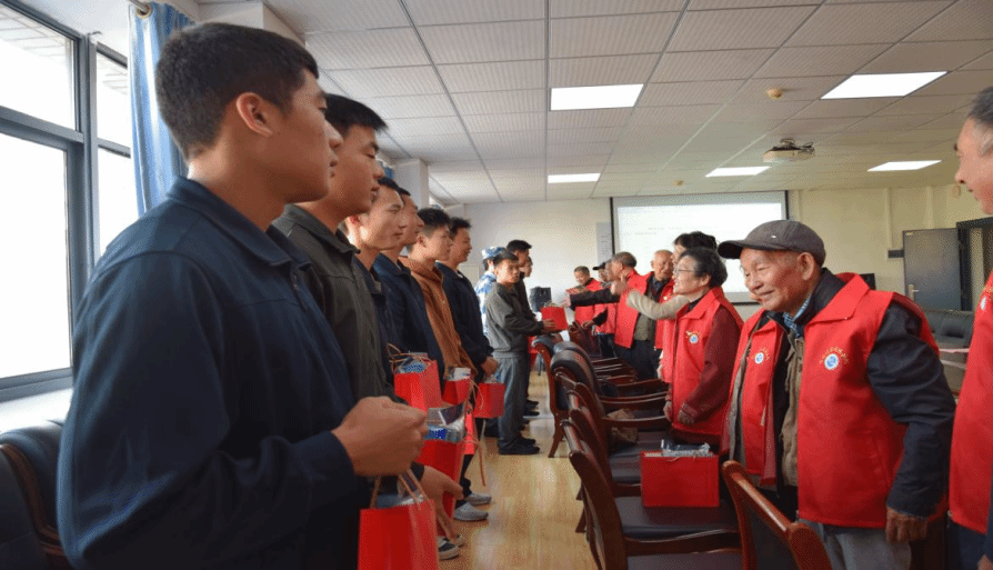 在礼包发放环节,10名离退休老同志亲手将生活礼包递到受助学生代表手中,礼包承载着老一辈的深切关怀,握手与微笑间传递着跨代温暖。受助定向培养军士庄重敬礼、双手接礼,现场掌声雷动,定格下“银青互助”的暖心瞬间。