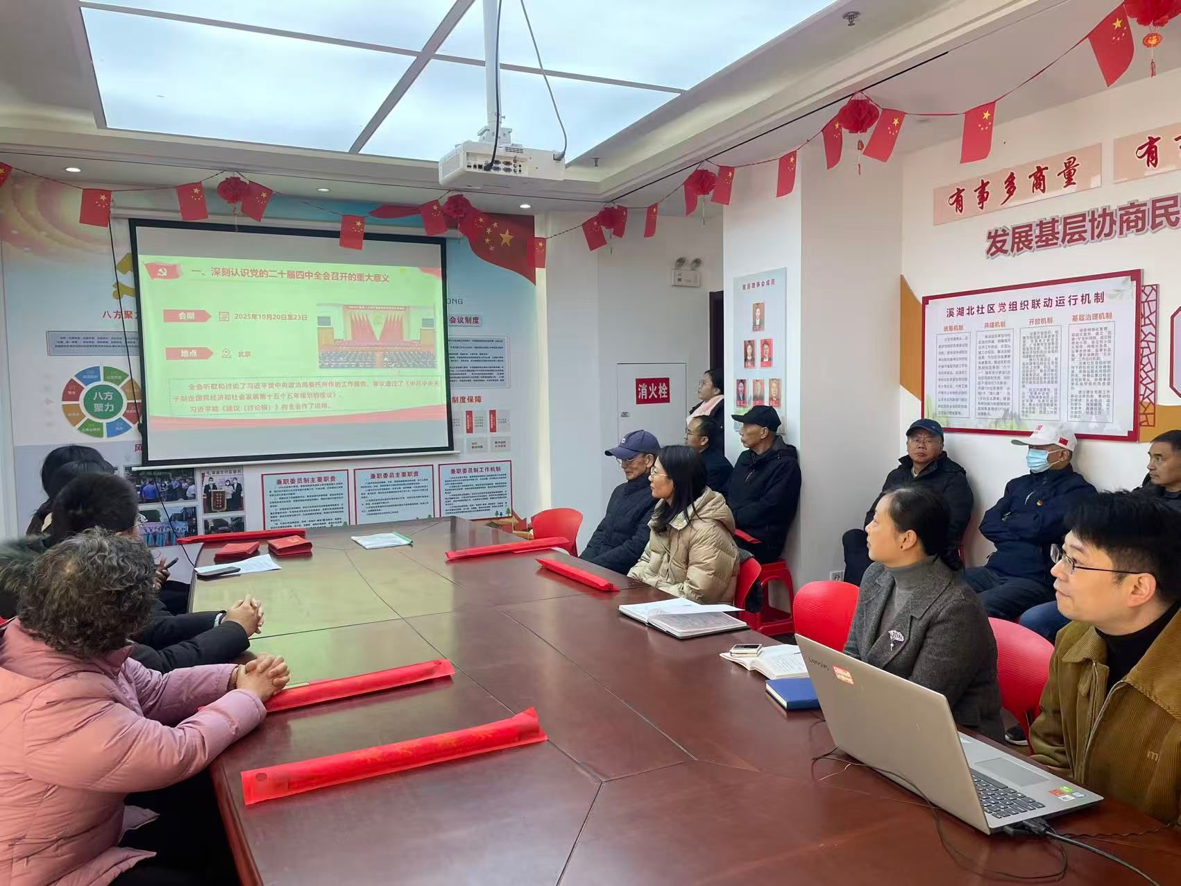 近日,马克思主义学院形势与政策教研室全体党员走进溪湖北社区,与社区党员开展支部共建交流活动,喻厚伟老师围绕学习贯彻党的二十届四中全会精神作专题宣讲,以通俗语言解读全会核心要义、阐释实践要求,同时结合社区治理实际回应基层党员关切。在场党员纷纷点赞,称宣讲既有理论深度又有民生温度,让人受益匪浅。
