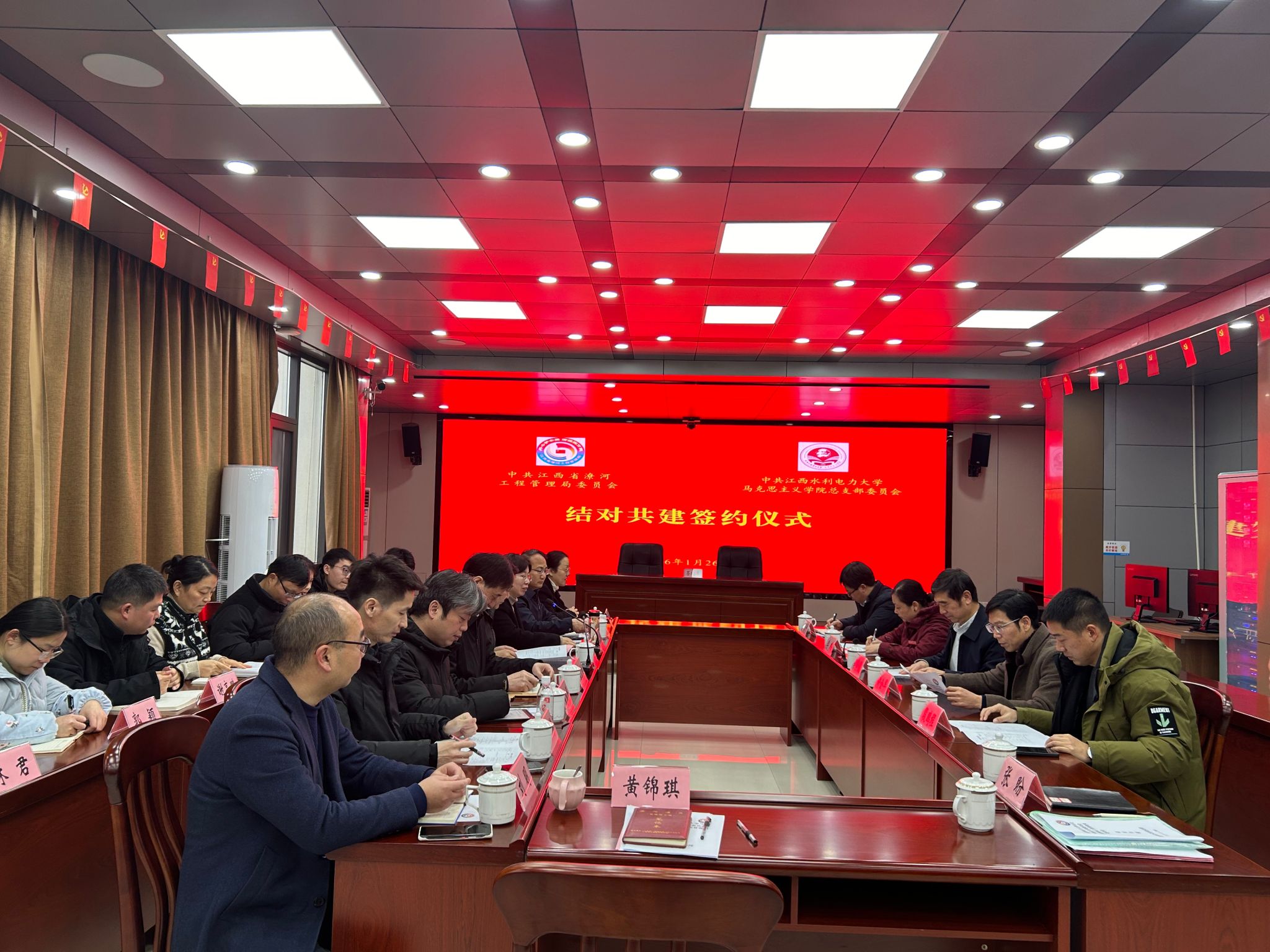 1月26日,我校马克思主义学院党总支与江西省潦河工程管理局党委在江西奉新县举行结对共建签约活动。校党委副书记吴泽俊、省水利厅二级巡视员龚晓明出席活动并致辞,双方单位相关人员20余人参加。