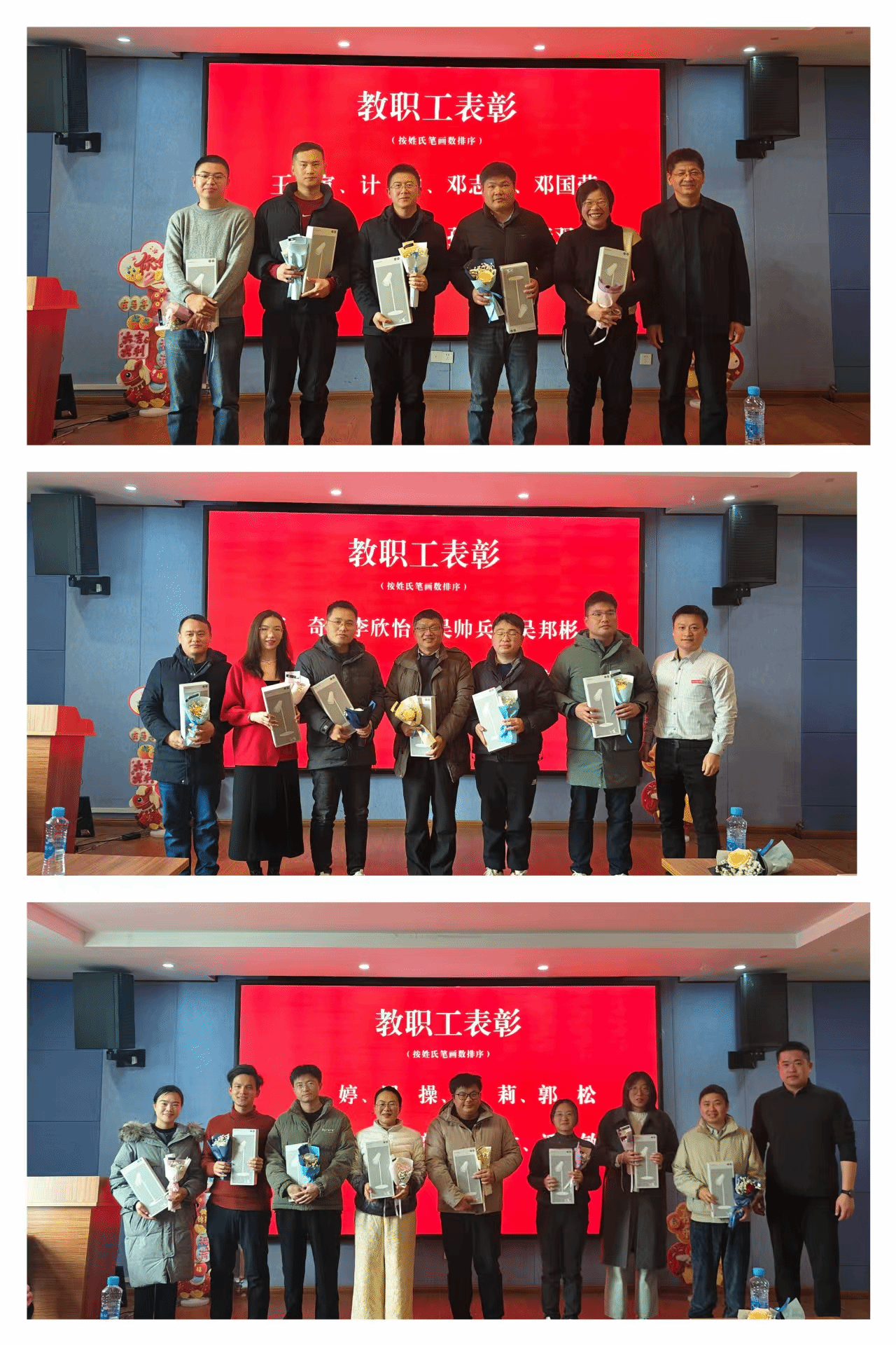 茶话会上,学院负责人致新春贺词,全面回顾了过去一年学院在教育教学、科研创新、人才培养、社会服务等方面取得的丰硕成果,并对2026年的发展前景作出展望。会上,学院对年度考核优秀、获得省级以上科研奖励、获得省级以上相关赛事奖励、科研经费到账50万元以上、成功募集社会捐赠的教职工进行了集中表彰。