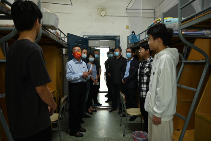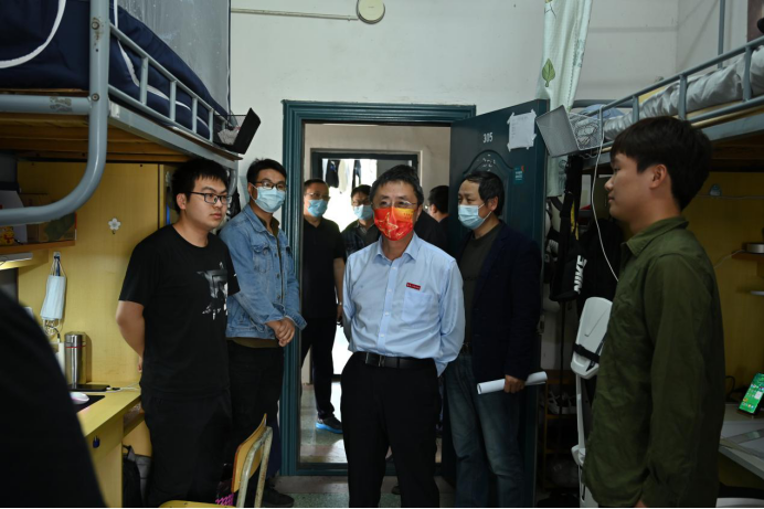 4月8日上午,校党委书记金志农先后来到学生社区10栋、15栋的学生宿舍,查看疫情防控措施落实情况,与学生面对面交流。