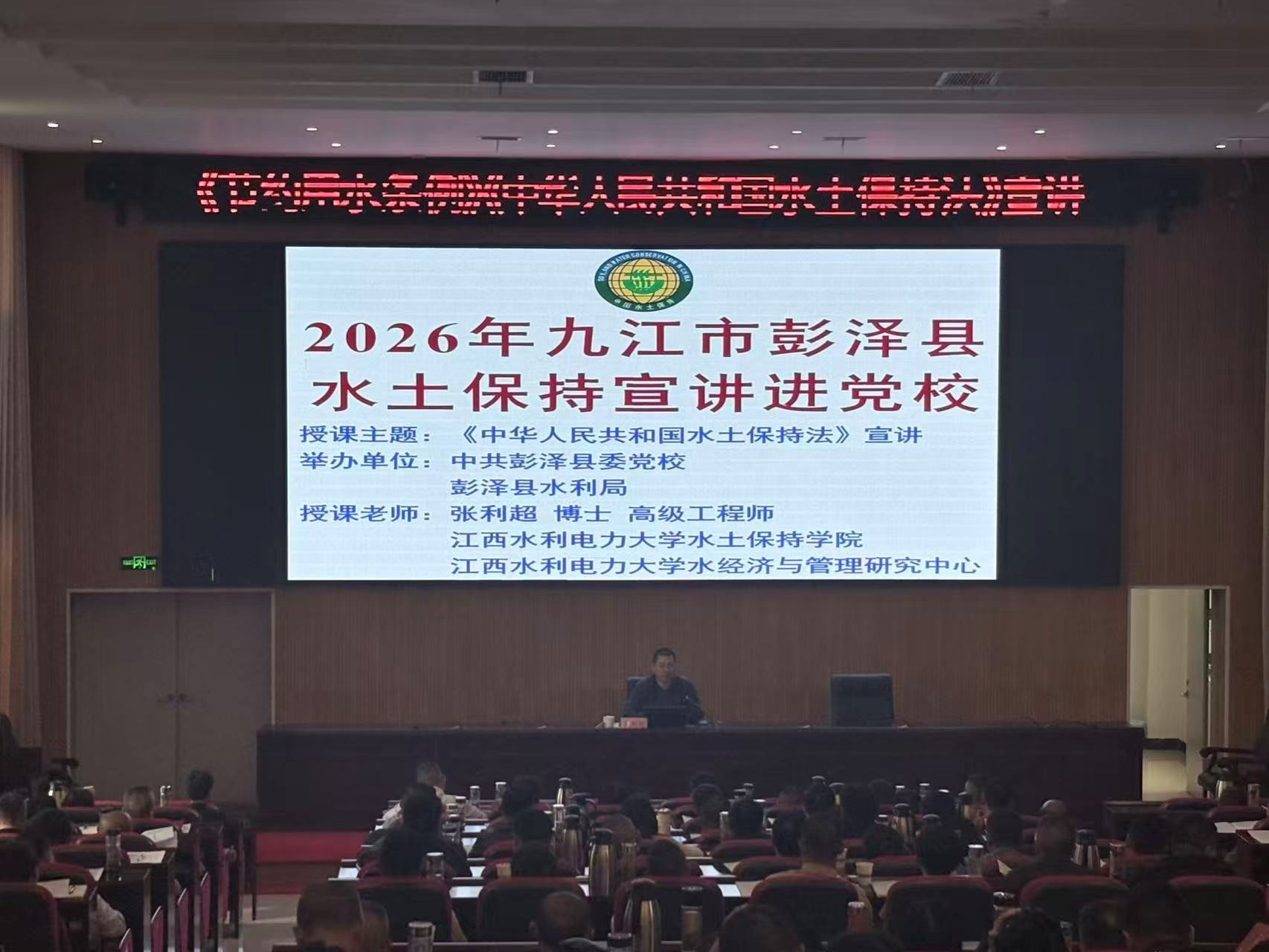 4月12日,应中共彭泽县委党校、彭泽县水利局邀请,我校水土保持学院教师张利超为彭泽县全县村(社区)党组织书记、村(居)民委员会主任培训班作专题授课,约170名基层干部参加培训。