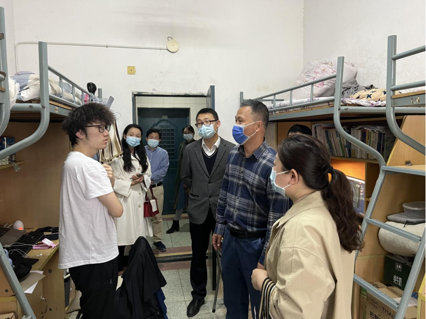 4月15日上午,电气工程学院班子成员带领教研室主任、专业负责人等来到学生宿舍,仔细了解同学们的就业、考研情况,思想动态和当前就业情况,针对个人具体情况,逐个给予建议和指导,推进毕业生就业工作,帮助毕业生实现高质量就业。(文/付博 图/周宇 责任编辑 周冠佳 潘旭 学生记者 侯家东)