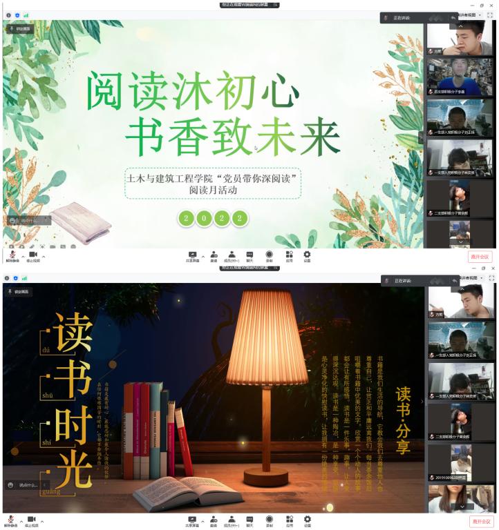 4月10日,土木与建筑工程学院启动“阅读沐初心 书香致未来”阅读月活动。活动在腾讯会议线上平台举行,全院学生党员、入党积极分子参加。
