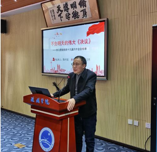 12月7日下午,我校马克思主义学院教授、江西服装学院党委书记陈付龙应邀做客瑶湖学院明德讲堂,作“不负明天的伟大《决议》——学习贯彻党的十九届六中全会精神”主题报告。