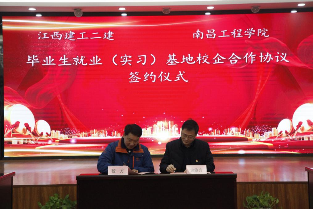 1月4日上午,土木与建筑工程学院负责人、教师代表、学生代表一行赴江西建工第二建筑有限责任公司开展“走进赣企、认知岗位”校企共建活动,签订了毕业生就业基地校企合作协议。