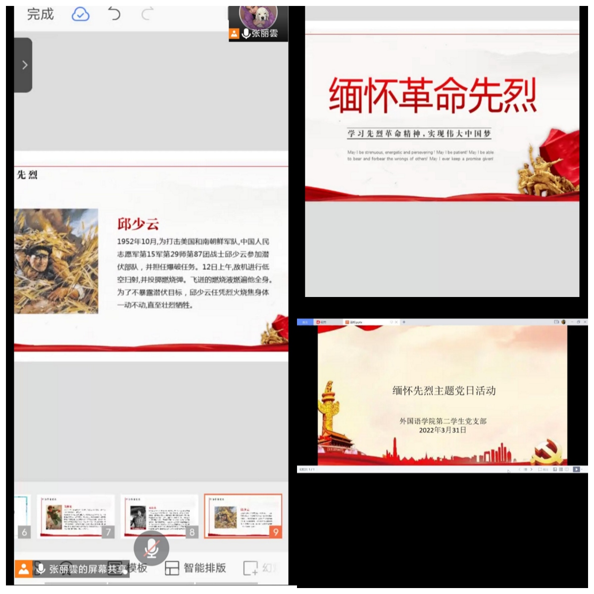 清明节前后,外国语学院组织师生党员和团员开展缅怀革命先烈主题党(团)日活动。学院战“疫”临时党支部、临时团支部和全院师生党支部组织师生党员开展了重温革命先烈们的英雄事迹、网上祭扫、观看红色题材影视以及发表或攥写观后感活动。