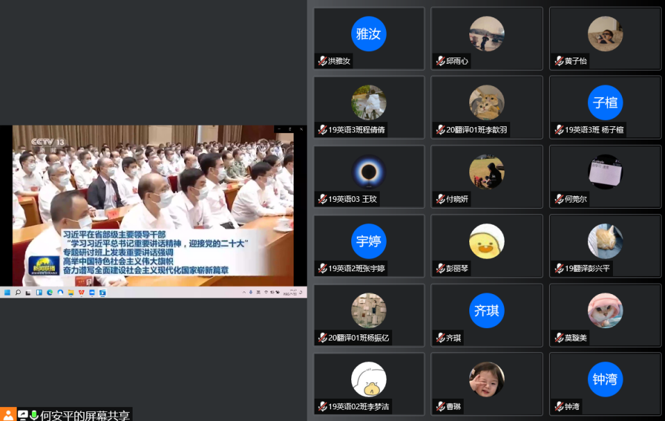 7月29日至30日,外国语学院组织领导班子成员、专业负责人、教师代表、师生党员通过线下+线上、集中+分散方式,学习习近平总书记在省部级主要领导干部“学习习近平总书记重要讲话精神,迎接党的二十大”专题研讨班上发表的重要讲话精神。大家表示,深感习近平总书记的重要讲话指明方向、催人奋进,要自觉用习近平总书记重要讲话精神统一思想和行动,坚定信心、砥砺奋斗,全力投入到学校新一轮审核评估工作中,以实际行动迎接党的二十大胜利召开。(文/图 何安平 责任编辑 周冠佳 潘旭)