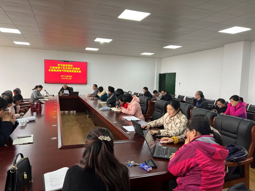 12月14日,电气工程学院召开全院大会,专题学习传达江西省第十五次党代会精神,学院党政班子成员、全体教职工、学生代表参加学习。