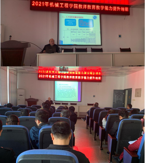 12月2日下午,机械工程学院开展教师教育教学能力提升培训,学校教育教学评估中心副主任桂家章到会指导,学院全体教师70余人参加。