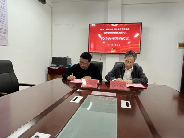 4月12日上午,水利与生态工程学院和江西省地质局第五地质大队开展校企合作座谈会,举行校企合作协议签订仪式。江西省地质局第五地质大队党委书记、队长万义有及相关负责人,水利与生态工程学院相关负责人、部分教研室主任及毕业班班主任参加活动。