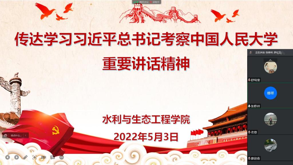 5月3日,水利与生态工程学院召开政治理论学习会,专题学习习近平总书记考察中国人民大学时的重要讲话精神,学院党政领导班子成员、全体教师参加会议。