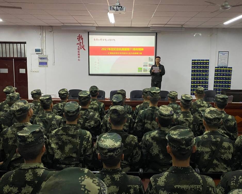 10月25日晚,士官学院组织开展“纪念抗美援朝七十一周年”主题教育活动,组织集中观看《抗美援朝战记》纪录片,围绕“传承红色基因”“争做担当民族复兴大任的时代新人”等主题进行演讲,勉励士官生要把爱国情、强国志、报国行自觉融入到实现中华民族伟大复兴的奋斗之中,努力成长为对国家和社会有用的人才。(文/图 易翀 责任编辑 周冠佳 潘旭)