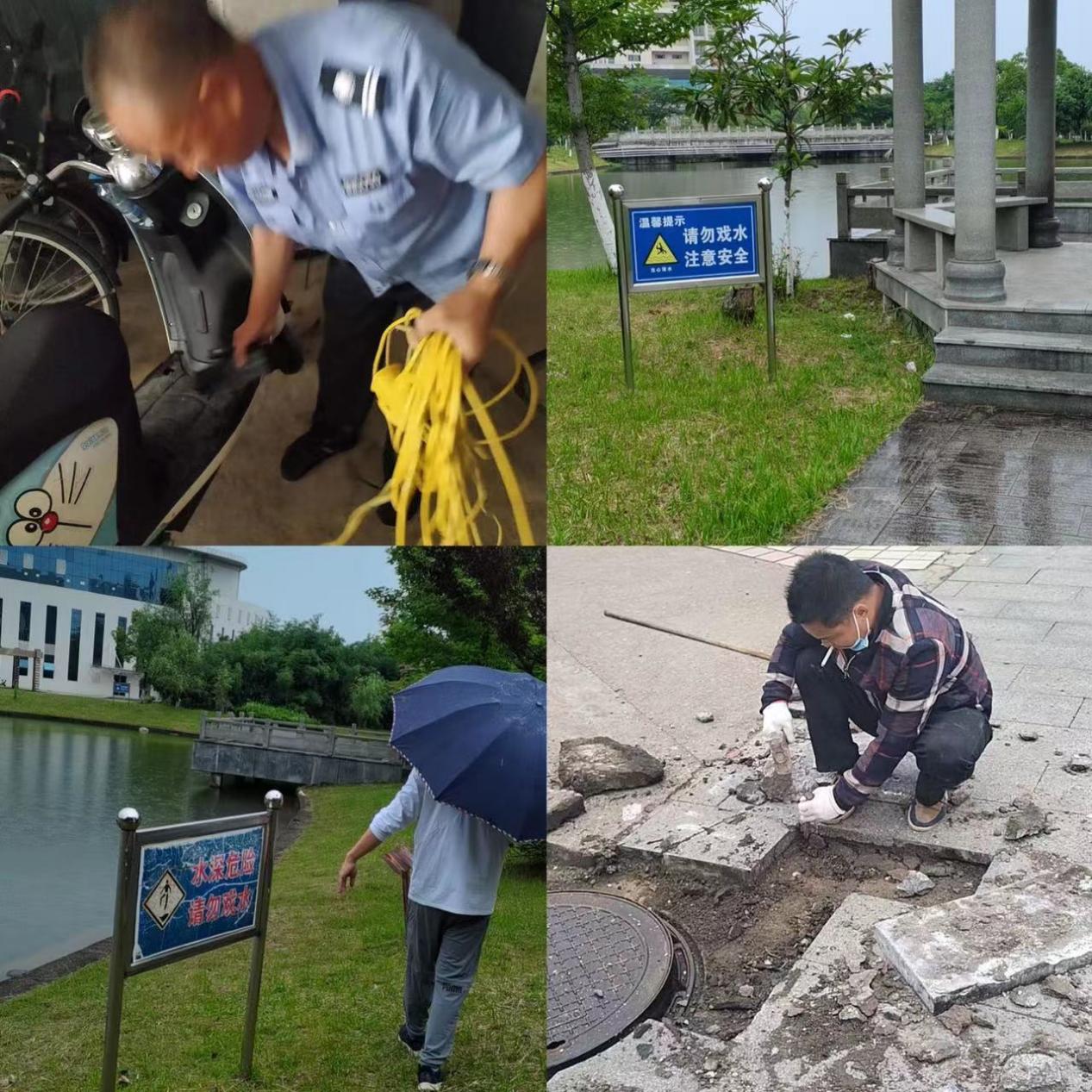 近期,汛期来临,雨水增多,六干渠水位高涨。后勤保障处高度重视学校安全工作,按照上级和学校要求,积极做好后勤保障统筹调度工作,提示我校师生以及家属不在水域周边行走、做好雨季防雷、防滑工作,增强防范意识和自救自护能力。后勤保障处组织有关负责人对我校水域、校园维修施工区域、六干渠沿岸警示牌等进行了检查,维修水域附近排水井、整治六干渠岸坡道路、排查处理楼宇墙体脱落隐患10余处,增加水域周边警示牌20块。(文/图 张冬雪 责任编辑 周冠佳 潘旭)